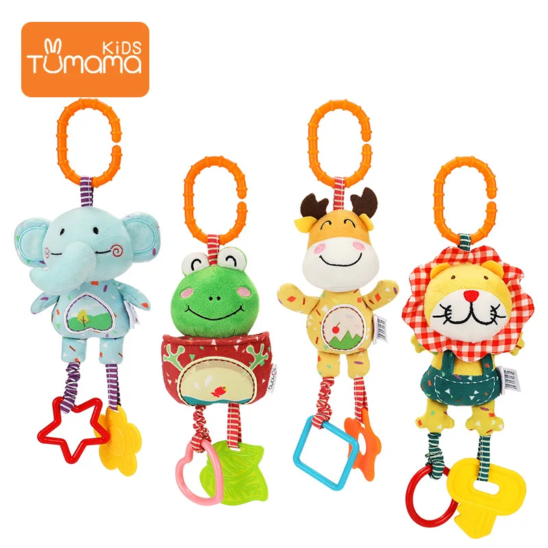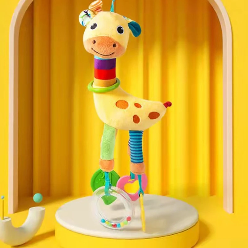 Baby Car Toys Stroller Plush Toy Animal Stuffed Hanging Rattle Toys Newborn Crib Bed Around Toy w/ Teether Rattle Sound