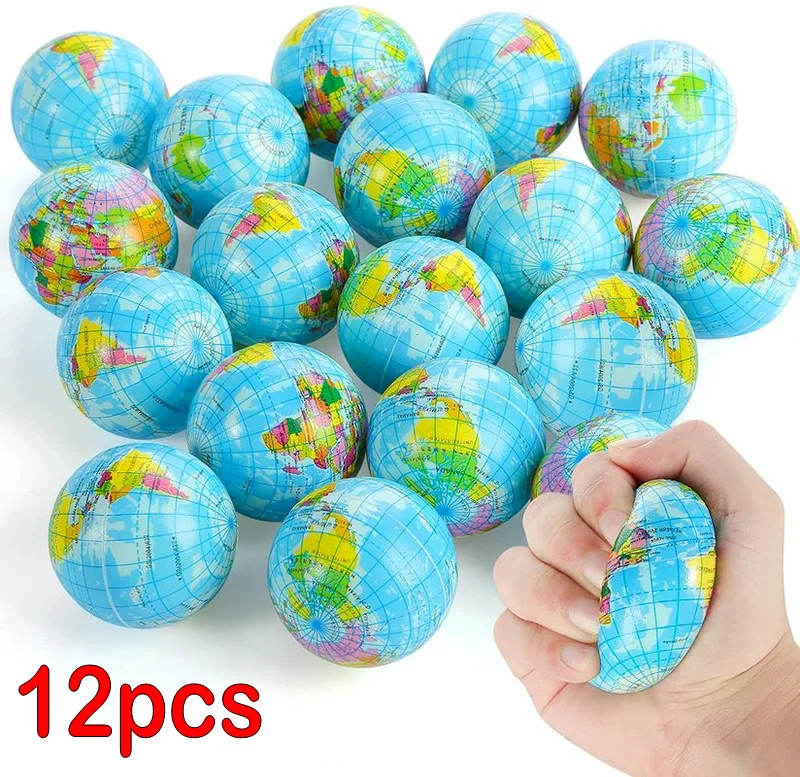 12pcs Stress Relief World Map Foam Ball Atlas Globe Palm Ball Planet Earth Ball Adult Kids Novelty Funny Gadgets Stress Toys